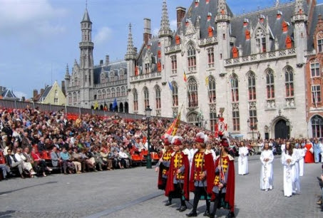 Depuis des siècles, la ville commémore cet événement historique à travers la procession du Saint-Sang le jeudi de l'Ascension. Groupes et chars évoquent dans une première partie l'histoire de la faute et du rachat depuis Adam et Eve. Une seconde phase retrace les principaux événements de la vie de Jésus. Et on assiste ensuite au transfert de la relique sacrée, escortée par les Croisés et les membres des corporations.